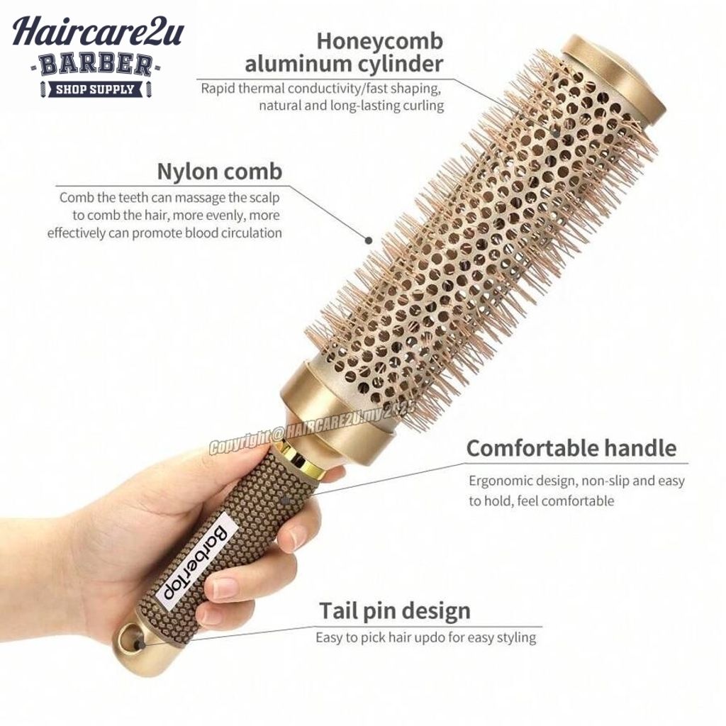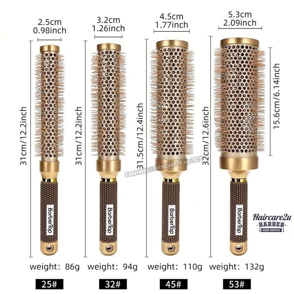 BarberTop AH434 Aluminium Rolling Curling Round Hot Brush are made from unbreakable aluminium which eliminates frizz and creates silky, smooth hair, evenly spreads and holds heat longer, so hair dries faster. It makes hair look healthy and freshly conditioned.
