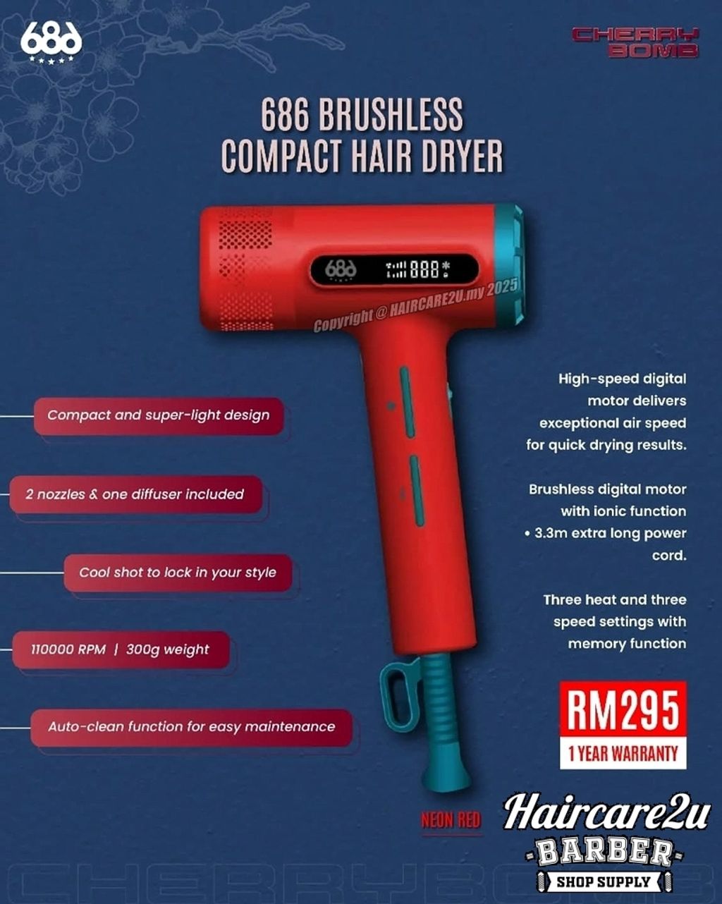 Cherry Bomb 5 Star 686 Brushless Compact Hair Dryer