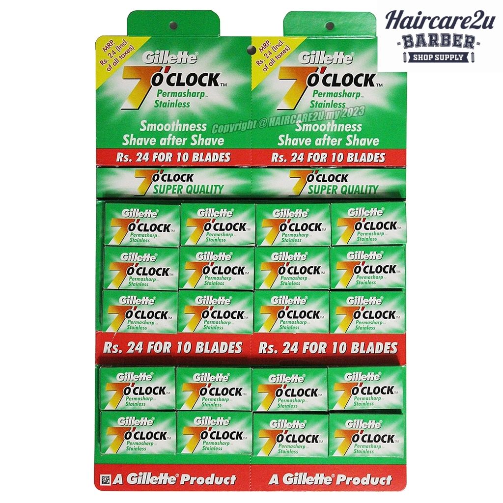 Double Edge Blades saloon pack. Gillette 7 O'clock Permasharp Double Edge Blades. Extra fine and sharp, 100% ORIGINAL in a saloon pack.