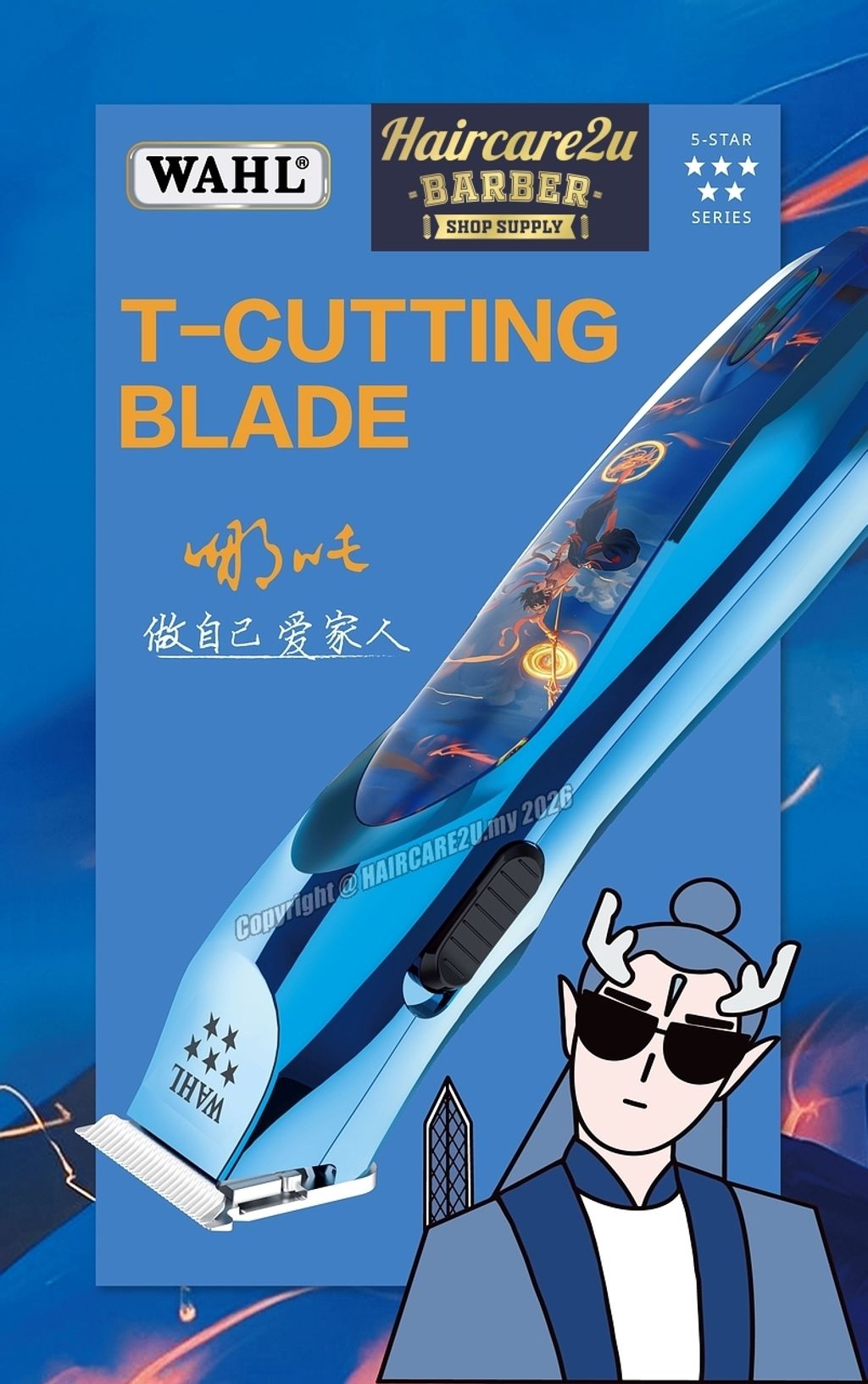 Wahl 2237-02 LCD Cordless Hair Clipper x 6920 Shaver & 8172-02 Hair Trimmer (NeZha Edition)